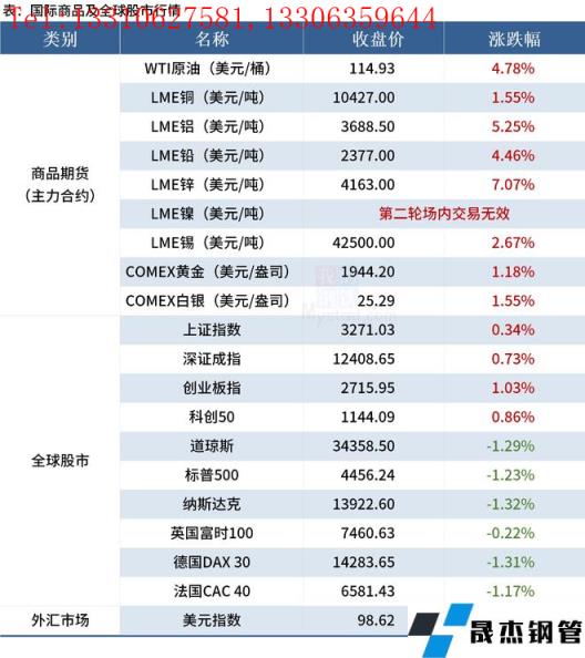 免責聲明:本網站(山東武鞍無縫鋼管廠www.97ks.net)刊載的“2022年03月24日早讀:黑色期貨夜盤全線上漲,國際原油金屬期價大漲”等均源于網絡,版權歸原作者所有,且僅代表原作者觀點,本文所載信息僅供參考。轉載僅為學習與交流之目的,如無意中侵犯您的合法權益,請及時聯系刪除。本網站刊登此篇文章并不意味著本站贊同其觀點或證實其內容的真實性,我們不對其科學性、嚴肅性等作任何形式的保證。如果侵犯了您的版權,請盡快聯系我們予以撤銷,謝謝合作!