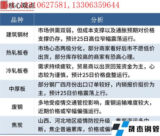建筑厚壁無縫鋼管:3月24日,全國31個主要城市20mm三級抗震螺紋鋼均價4983元/噸,較上個交易日上漲18元/噸。本周螺紋鋼周產(chǎn)量連續(xù)第六周增加,總庫存由降轉(zhuǎn)升,廠庫連續(xù)第二周出現(xiàn)回升,表觀消費基本持平。目前來看,近期全國疫情呈現(xiàn)局部高度聚集和多點散發(fā)態(tài)勢,多個地區(qū)厚壁無縫鋼管市場供需面均有不同程度影響,雖然部分區(qū)域陸續(xù)恢復(fù)運行,但同時亦有其他區(qū)域疫情管控加嚴(yán)對于物流運輸及工程施工形成制約,影響終端需求釋放。目前現(xiàn)貨市場仍處于供需雙弱的局面,但成本支撐以及通脹預(yù)期對價格支撐仍存。因此預(yù)計25日國內(nèi)建筑厚壁無縫鋼管價格或?qū)⒏呶徽鹗庍\行為主。