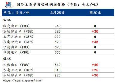 據(jù)海外市場參與者透露,本周中國方坯在海外市場報價依舊有優(yōu)勢,據(jù)了解,中國鋼坯報價主要面向東南亞國家,例如菲律賓,泰國等。了解到,中國150mm方坯向菲律賓報價約為810美元/噸CFR。