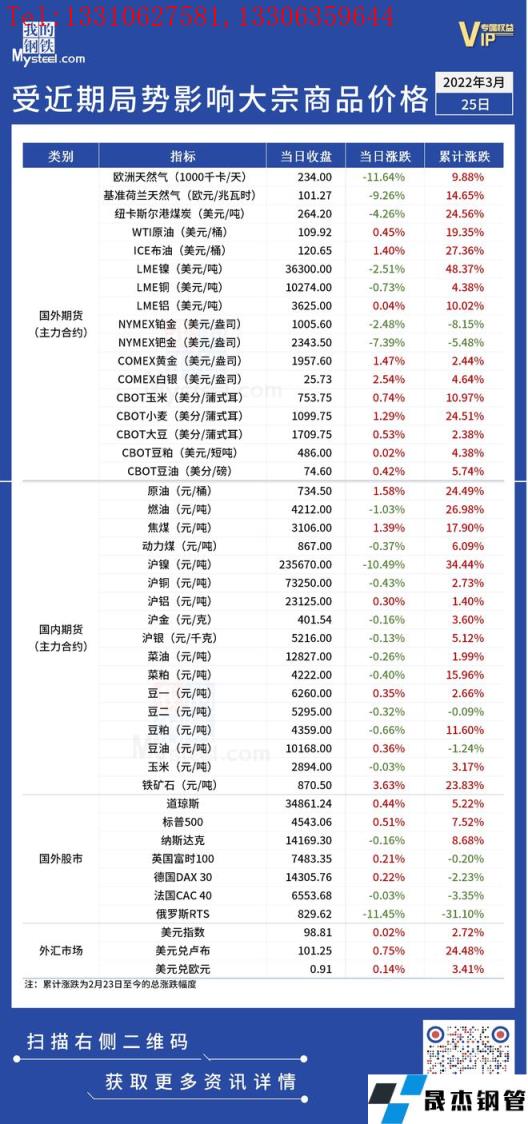 免責聲明:本網站(山東武鞍無縫鋼管廠www.97ks.net)刊載的“受近期局勢影響大宗商品價格一覽表(3月25日)”等均源于網絡,版權歸原作者所有,且僅代表原作者觀點,本文所載信息僅供參考。轉載僅為學習與交流之目的,如無意中侵犯您的合法權益,請及時聯(lián)系刪除。本網站刊登此篇文章并不意味著本站贊同其觀點或證實其內容的真實性,我們不對其科學性、嚴肅性等作任何形式的保證。如果侵犯了您的版權,請盡快聯(lián)系我們予以撤銷,謝謝合作!