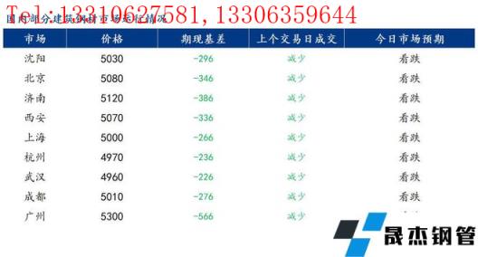 現貨市場動態:5日,全國31個主要城市20mm三級抗震螺紋鋼均價5114元/噸,較上個交易日跌28元/噸;上海螺紋鋼美元計價指數收于766.49,跌1.87%。具體來看,昨日早盤期螺震蕩偏弱,上午商家建筑厚壁無縫鋼管價格整體下跌,午后期螺繼續走弱,市場交投氛圍較為冷清,全天整體成交較前一交易日有所減量。預計今日國內建筑厚壁無縫鋼管市場偏弱運行。