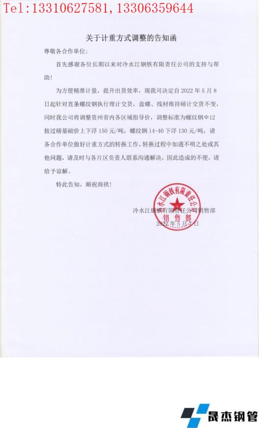 免責聲明:本網(wǎng)站(山東武鞍無縫鋼管廠www.97ks.net)刊載的“冷水江鋼鐵有限責任公司關于對貴州區(qū)域計重方式調整的告知函”等均源于網(wǎng)絡,版權歸原作者所有,且僅代表原作者觀點,本文所載信息僅供參考。轉載僅為學習與交流之目的,如無意中侵犯您的合法權益,請及時聯(lián)系刪除。本網(wǎng)站刊登此篇文章并不意味著本站贊同其觀點或證實其內(nèi)容的真實性,我們不對其科學性、嚴肅性等作任何形式的保證。如果侵犯了您的版權,請盡快聯(lián)系我們予以撤銷,謝謝合作!