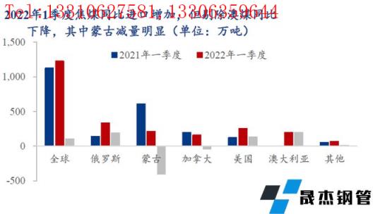 2月以來,國際無縫厚壁鋼管廠家補庫需求旺盛、俄羅斯出口受阻疊加澳洲雨季頻繁等因素,引起國際焦煤價格大幅波動,以澳煤為代表的海運煤價格頻創(chuàng)新高,最高時達到599美元/噸,截至5月6日,澳一線主焦煤FOB價仍高達516.75美元/噸,與國內焦煤價格的較大差距使得美、加等海運煤逐步失去進口優(yōu)勢。