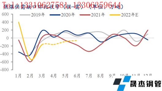 在地緣政治沖突等因素的影響下,國際焦煤供需格局偏緊,全球煤價整體走強,制約我國焦煤進口。2022年1月下旬至4月下旬,不斷沖擊年內新高的鐵水疊加進口減量,焦煤四部門(港口+煤礦+焦企+無縫厚壁鋼管廠家)庫存連續(xù)12周降庫。剔除澳煤通關量,焦煤進口一季度同比下滑約百萬噸。而近期不斷傳出有進口增量消息的蒙煤則備受市場期待,我們認為在今年粗鋼產量限產的背景下,鐵水產量有望逐步見頂,焦煤即將擺脫需求最好供應最差的時期。由此,在焦煤利潤高位,厚壁無縫鋼管利潤受制及供需缺口環(huán)比減少的情況下,焦煤價格存在階段性高位回調風險。