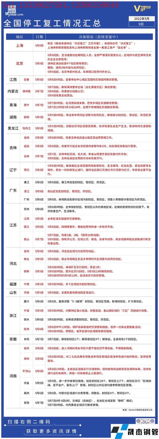 免責聲明:本網站(山東武鞍無縫鋼管廠www.97ks.net)刊載的“疫情影響丨全國停工復工情況匯總(5月9日)”等均源于網絡,版權歸原作者所有,且僅代表原作者觀點,本文所載信息僅供參考。轉載僅為學習與交流之目的,如無意中侵犯您的合法權益,請及時聯系刪除。本網站刊登此篇文章并不意味著本站贊同其觀點或證實其內容的真實性,我們不對其科學性、嚴肅性等作任何形式的保證。如果侵犯了您的版權,請盡快聯系我們予以撤銷,謝謝合作!