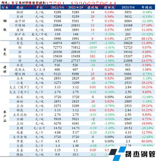 免責聲明:本網站(山東武鞍無縫鋼管廠www.97ks.net)刊載的“周報:大宗工業原材料、能源及農產品價格周報(4.29-5.06)”等均源于網絡,版權歸原作者所有,且僅代表原作者觀點,本文所載信息僅供參考。轉載僅為學習與交流之目的,如無意中侵犯您的合法權益,請及時聯系刪除。本網站刊登此篇文章并不意味著本站贊同其觀點或證實其內容的真實性,我們不對其科學性、嚴肅性等作任何形式的保證。如果侵犯了您的版權,請盡快聯系我們予以撤銷,謝謝合作!