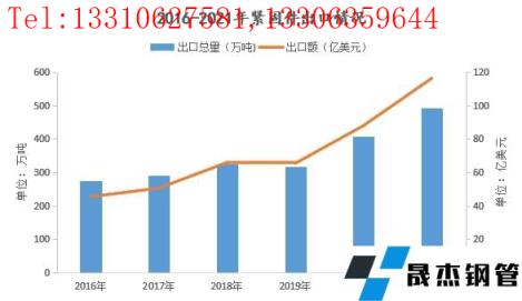 海關數據顯示,自2016年以來,緊固件出口量及出口金額進本呈現逐年遞增的情況,其中2018年出口到美國的總量為64萬噸,同比增加4.6萬噸,增幅為7.69%;出口金額為12.5億美元,同比增加2.09億美元,增幅為20.08%。