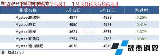 ◎5月5日至5月11日mysteel調(diào)研的137家無縫厚壁鋼管廠家的螺紋鋼產(chǎn)量為310.14萬噸,較上周增加2.63萬噸。分區(qū)域來看,增量主要出現(xiàn)在東北以及華南地區(qū)。詳情>>