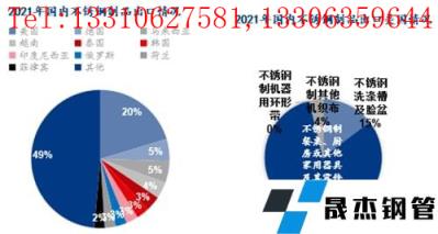 中國大陸不銹厚壁無縫鋼管出口主要地為韓國、印度、臺灣省、土耳其等地,出口美國的量占比僅2%,而出口美國的不銹厚壁無縫鋼管主要以卷板、型材、無縫管為主,此次清單中法蘭及管附件占比僅9%(2021年量約0.84萬噸)。