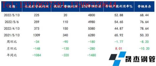 據調研結果顯示,5月11日調研結果顯示:本周唐山地區主流樣本無縫厚壁鋼管廠家平均鐵水不含稅成本為3665元/噸,平均鋼坯含稅成本 4721元/ 噸,周環比下調105元/噸,與5月11日當前普方坯出廠價格 4640元/ 噸相比,無縫厚壁鋼管廠家平均毛利潤-81元/噸,周環比下調45元/噸。據調研,截止目前唐山地區樣本企業社會庫存為49.42萬噸,周環比增加3.34萬噸,月環比下降9.84萬噸,年同比下降12.44萬噸。從坯料角度看來,當前鋼坯利潤為負,且庫存處于相對合理范圍,對價格或有一定支撐。