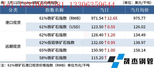 ◎5月13日,全國主港鐵礦石成交93.50萬噸,環比增76.4%;237家主流貿易商建材成交15.61萬噸,環比增27%。