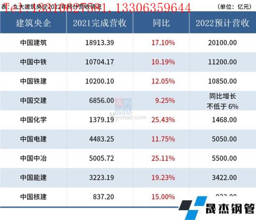 免責聲明:本網站(山東武鞍無縫鋼管廠www.97ks.net)刊載的“9大建筑央企預計2022年營收超6.6萬億元”等均源于網絡,版權歸原作者所有,且僅代表原作者觀點,本文所載信息僅供參考。轉載僅為學習與交流之目的,如無意中侵犯您的合法權益,請及時聯系刪除。本網站刊登此篇文章并不意味著本站贊同其觀點或證實其內容的真實性,我們不對其科學性、嚴肅性等作任何形式的保證。如果侵犯了您的版權,請盡快聯系我們予以撤銷,謝謝合作!