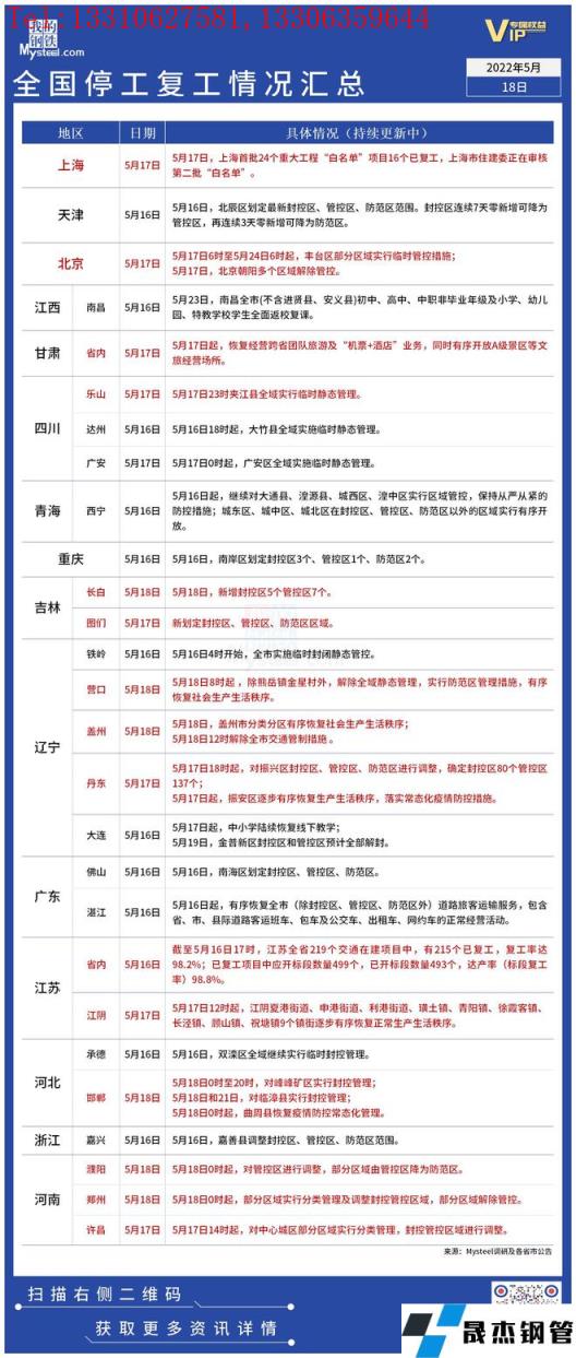 免責聲明:本網站(山東武鞍無縫鋼管廠www.97ks.net)刊載的“疫情影響丨全國停工復工情況匯總(5月18日)”等均源于網絡,版權歸原作者所有,且僅代表原作者觀點,本文所載信息僅供參考。轉載僅為學習與交流之目的,如無意中侵犯您的合法權益,請及時聯系刪除。本網站刊登此篇文章并不意味著本站贊同其觀點或證實其內容的真實性,我們不對其科學性、嚴肅性等作任何形式的保證。如果侵犯了您的版權,請盡快聯系我們予以撤銷,謝謝合作!