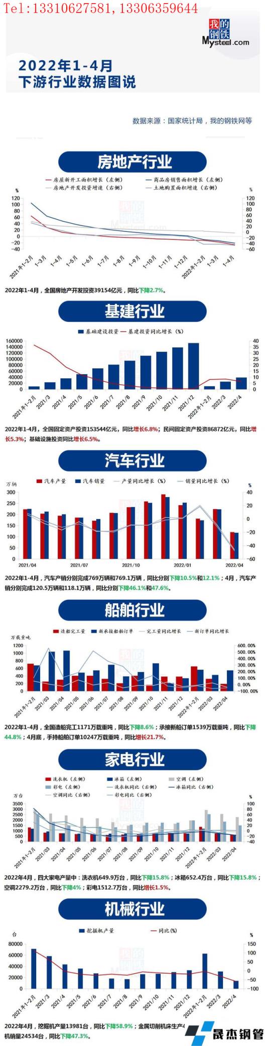 匯總了2022年1-4月部分下游用鋼行業(yè)的運(yùn)行情況。
