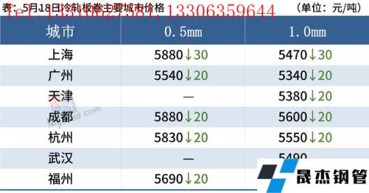 冷軋板卷:5月18日,全國24個主要城市1.0mm冷卷均價5535元/噸,較上個交易日持下跌20元/噸。黑色系期貨盤面整體震蕩下行,市場交投氛圍較為冷清,午后部分地區二次下調價格。據悉,西南市場汽車芯片短缺現象仍然存在,導致市場需求有所滯后,下游采購意愿偏弱;而華南市場受疫情影響,部分零部件遲遲未到貨,下游加工廠生產積極性較低,市場需求持續疲軟。綜合來看,預計19日國內冷軋板卷現貨價格或將繼續偏弱運行。