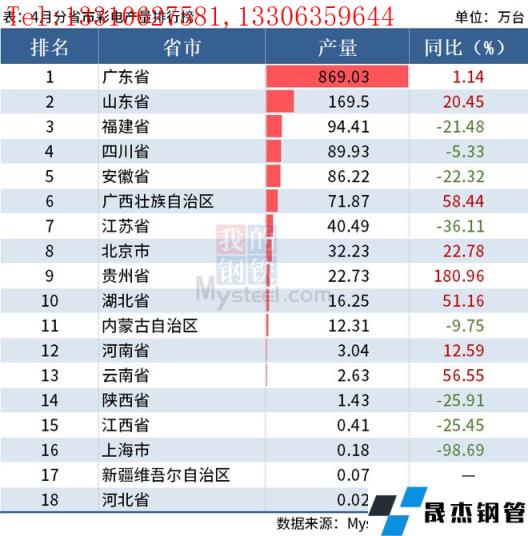 從分省市數據來看,4月廣東、山東彩電產量超100萬臺,其中廣東省以產量869.03萬臺排名第一,山東省以產量169.5萬臺排名第二,福建省產量94.41萬臺排名第三。