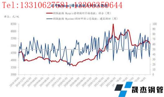 具體各品種指數來看,5月20日建筑厚壁無縫鋼管情緒指數為61.49,較5月13日回升25.93;熱軋板卷情緒指數為61.18,較5月13日回升10.36;冷軋板卷情緒指數為58.68,較5月13日回升4.65;中厚板情緒指數為59.1,較5月13日回升7.15;結構鋼情緒指數為31.48,較5月13日回升0.39;工業線材情緒指數為49.62,較5月13日回升10.88;鍍鋅板卷情緒指數為51.39,較5月13日回升13.88;焊接厚壁鋼管情緒指數為47.94,較5月13日回升0.46;無縫厚壁鋼管情緒指數為13.07,較5月13日回落22.16;帶鋼情緒指數為44.12,較5月13日回落4.32。