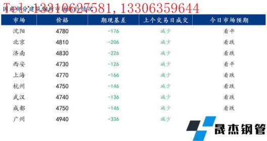 現(xiàn)貨市場動態(tài):23日,全國31個主要城市20mm三級抗震螺紋鋼均價4839元/噸,較上個交易日跌10元/噸;上海螺紋鋼美元計價指數(shù)收于729.78,跌0.08%。具體來看,昨日早盤期螺震蕩運行,部分地區(qū)市場報價小幅上漲,盤中期螺轉(zhuǎn)弱,成交轉(zhuǎn)弱,市場情緒較為悲觀,商家多以暗降出貨。午后期螺繼續(xù)走弱,現(xiàn)貨價格進一步走低,全天成交表現(xiàn)清淡。預計今日國內(nèi)建筑厚壁無縫鋼管市場偏弱運行。