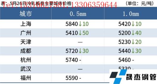 冷軋板卷:5月26日,全國24個主要城市1.0mm冷卷均價5424元/噸,較上個交易日下跌18元/噸。今日黑色系期貨未見止跌跡象,市場心態仍較為悲觀。據部分市場反饋,當前市場商家在庫存和資金雙重壓力影響下,商家出貨回籠資金意愿較強,其低價成交尚可,高價成交較為艱難。庫存方面,據不完全統計,現冷軋無縫厚壁鋼管廠家庫存41.78萬噸,周環比減少2.36萬噸,社會庫存138.46萬噸,周環比增加1.17萬噸,周消費量84.05萬噸,環比增加0.16萬噸。綜合來看,故預計27日國內冷軋板卷價格或將偏弱運行。