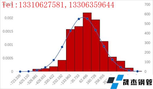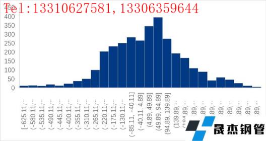 圖3:2009年來現貨市場熱卷和螺紋鋼價格差值概率分布圖
