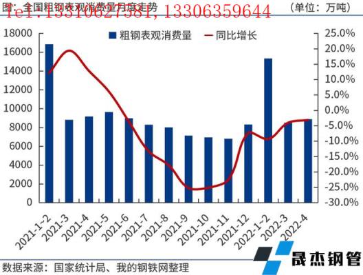 統(tǒng)計局、海關(guān)總署數(shù)據(jù)顯示,2022年4月份,全國粗鋼產(chǎn)量9277.5萬噸,厚壁無縫鋼管凈出口402.1萬噸,折合粗鋼凈出口418.9萬噸(厚壁無縫鋼管按0.96折算),鋼坯、鋼錠凈進(jìn)口24.9萬噸,粗鋼表觀消費(fèi)量8884萬噸,同比下降3.1%。(注:2021年4月份,全國粗鋼產(chǎn)量修正為9786.4萬噸,粗鋼表觀消費(fèi)量修正為9166萬噸。)