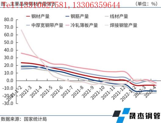 2022年4月份,鋼筋、線材、中厚寬鋼帶等日均產(chǎn)量為68.5萬噸、41.5萬噸、55.2萬噸,分別較上月增加2.7萬噸、1.6萬噸和2.6萬噸;冷軋薄板、焊接厚壁鋼管等日均產(chǎn)量11.5萬噸和16.0萬噸,分別較上月減少2.8萬噸和0.8萬噸。由于國內(nèi)疫情反復(fù),預(yù)計5月上半月主要品種厚壁無縫鋼管日均產(chǎn)量高位運(yùn)行,下半月建筑厚壁無縫鋼管生產(chǎn)企業(yè)因虧損減產(chǎn)。