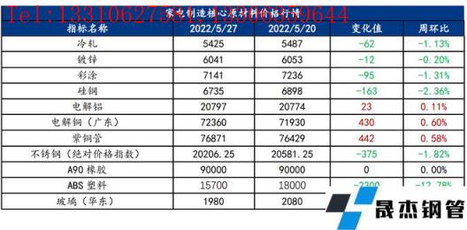 免責(zé)聲明:本網(wǎng)站(山東武鞍無(wú)縫鋼管廠www.97ks.net)刊載的“家電原材料周報(bào)(5.23-5.27)”等均源于網(wǎng)絡(luò),版權(quán)歸原作者所有,且僅代表原作者觀點(diǎn),本文所載信息僅供參考。轉(zhuǎn)載僅為學(xué)習(xí)與交流之目的,如無(wú)意中侵犯您的合法權(quán)益,請(qǐng)及時(shí)聯(lián)系刪除。本網(wǎng)站刊登此篇文章并不意味著本站贊同其觀點(diǎn)或證實(shí)其內(nèi)容的真實(shí)性,我們不對(duì)其科學(xué)性、嚴(yán)肅性等作任何形式的保證。如果侵犯了您的版權(quán),請(qǐng)盡快聯(lián)系我們予以撤銷,謝謝合作!