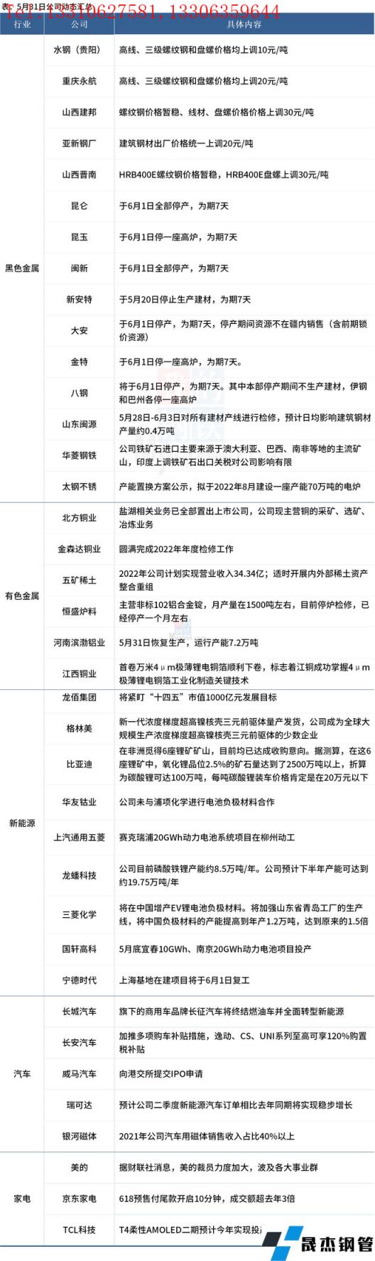 寧德時代上海基地在建項目將于6月1日復工;五礦稀土2022年公司計劃實現營業收入34.34億;欣旺達擬投入23億元建設年產3.1億只高性能圓柱鋰離子電池項目;龍佰集團將緊盯“十四五”市值1000億元發展目標。具體情況如下: