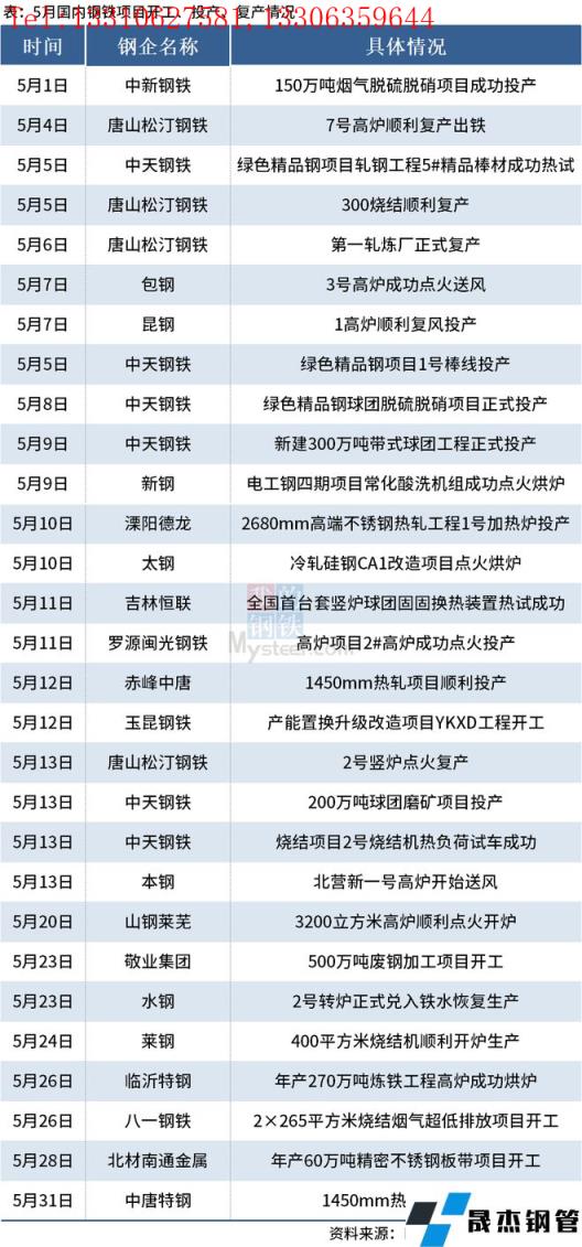 免責聲明:本網站(山東武鞍無縫鋼管廠www.97ks.net)刊載的“5月國內29個鋼鐵項目開工、投產或復產”等均源于網絡,版權歸原作者所有,且僅代表原作者觀點,本文所載信息僅供參考。轉載僅為學習與交流之目的,如無意中侵犯您的合法權益,請及時聯系刪除。本網站刊登此篇文章并不意味著本站贊同其觀點或證實其內容的真實性,我們不對其科學性、嚴肅性等作任何形式的保證。如果侵犯了您的版權,請盡快聯系我們予以撤銷,謝謝合作!