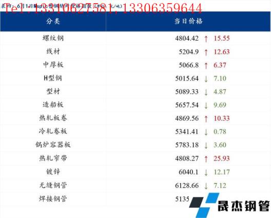 6月1日普鋼絕對價格指數變化:綜合指數5051.85,上漲9.41;螺紋鋼指數4804.42,上漲15.55;線材指數5204.9,上漲12.63;熱軋板卷指數4869.56,上漲10.33;冷軋板卷指數5341.41,下跌0.78;中厚板指數5066.8,上漲6.37。