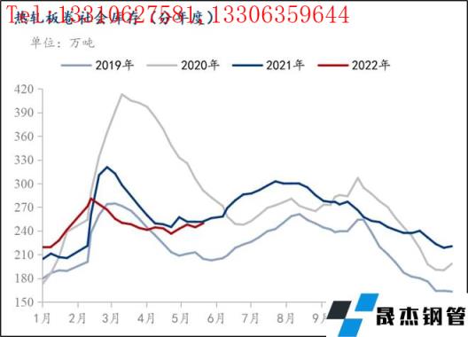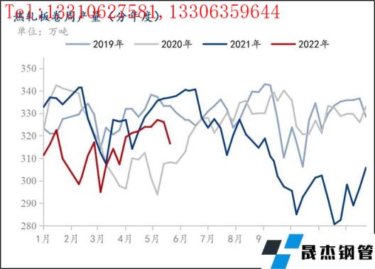 圖1:熱軋板卷周產(chǎn)量(分年度)