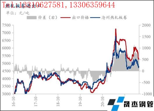 截止至6月1日,國內(nèi)天津港出口價格較國內(nèi)高522.4元/噸,約78.13美元/噸,較上月減少23.23美元/噸,其中出口價格月環(huán)比下跌485.93元/噸左右,國內(nèi)滄州熱卷價格月環(huán)比跌290元/噸左右。