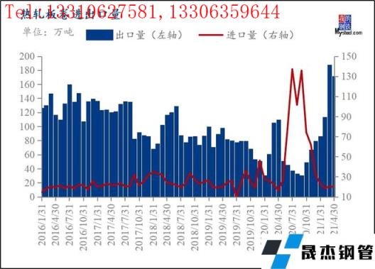 就目前來看,近期熱卷出口量暴增主要是因為2至4月份大批量出口單簽訂,并開始陸續(xù)發(fā)貨,因此4-6月份出口量或?qū)⒗^續(xù)攀升,但從近期出口市場訂單簽訂情況來看,我國熱軋板卷出口或?qū)⒃?月份開始減量。