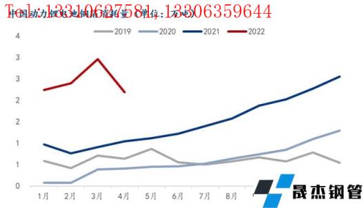2022年前4個月中國動力鋰電池產量為13GWh,同比增速超過180%,其中3月再度創歷史新高,動力電池類鋰電銅箔需求量接近10萬噸。