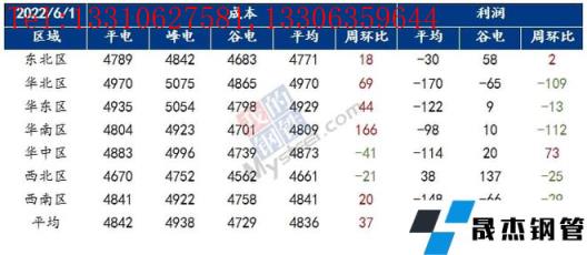 獨立電弧爐建筑厚壁無縫鋼管無縫厚壁鋼管廠家周度成本調(diào)研(2022年6月1日)(單位:元/噸)