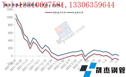 目前電弧爐無縫厚壁鋼管廠家仍虧損,僅谷電存在微利,減產(chǎn)、停產(chǎn)無縫厚壁鋼管廠家數(shù)量繼續(xù)增加。