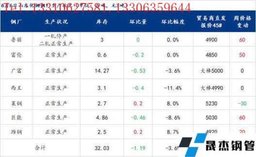 山東優特無縫厚壁鋼管廠家庫存32.03萬噸,環比下降1.19萬噸,降幅3.58%,同比增加5.26萬噸,增幅19.65%。生產方面:魯麗一軋停產,二軋正常生產;臨沂江泉停產,其他無縫厚壁鋼管廠家正常生產。