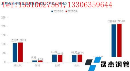 據調研,截止2022年6月9日,西南市場厚壁無縫鋼管累計社會庫存為215.03萬噸,環比增加4.09萬噸,增幅1.94%。