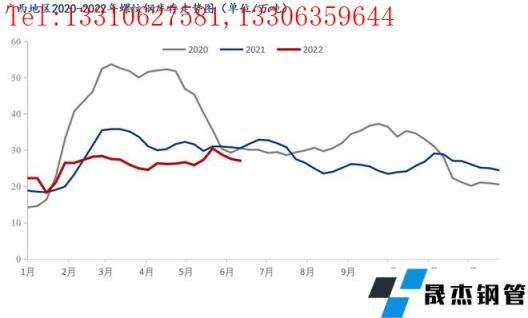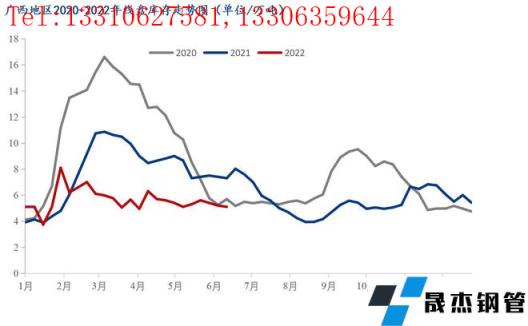 本周商家出貨相對來說一般,廣西建筑厚壁無縫鋼管社會庫存總量小幅下降。價格方面,期貨盤面震蕩運行,市場價格盤整居多。主要是由于本周內部分區域陰雨天氣持續,需要不暢,導致代理成交相對一般,部分也有存在完成每日計劃也有難度,另外本周疊加高考,尤其是市區不能工地不能開工,需求也相對減弱。從無縫厚壁鋼管廠家方面來看,由于部分無縫厚壁鋼管廠家利潤空間較小,其中c無縫厚壁鋼管廠家電爐停產預計到6月底才會復產,而其他電爐廠也多為不飽和生產,供給來看相對減少,從而市場部分資源分貨量有所減少。從庫存來看,南寧由于部分代理資源現在多數放在防城港倉庫,導致南寧庫存處于小幅下降局面,而柳州由于無縫厚壁鋼管廠家分貨有限,庫存也小幅下降,截至目前,廣西市場庫存建筑厚壁無縫鋼管32.2萬噸,較上周相比減少0.6萬噸。