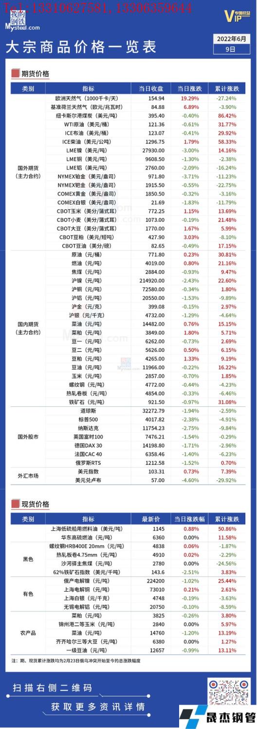 免責聲明:本網站(山東武鞍無縫鋼管廠www.97ks.net)刊載的“俄烏局勢丨大宗商品價格一覽表(6月9日)”等均源于網絡,版權歸原作者所有,且僅代表原作者觀點,本文所載信息僅供參考。轉載僅為學習與交流之目的,如無意中侵犯您的合法權益,請及時聯系刪除。本網站刊登此篇文章并不意味著本站贊同其觀點或證實其內容的真實性,我們不對其科學性、嚴肅性等作任何形式的保證。如果侵犯了您的版權,請盡快聯系我們予以撤銷,謝謝合作!