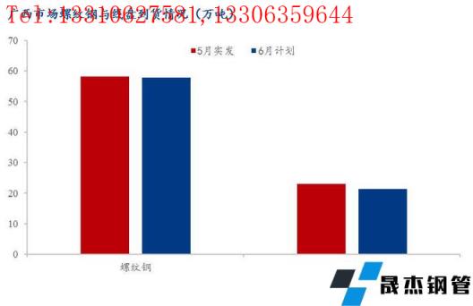 2、6月份廣西地區建材計劃供應量79.2萬噸,其中螺紋鋼計劃約57.9萬噸,環比下降0.3萬噸,降幅0.3%;線盤到貨量計劃約21.3萬噸,環比下降1.8萬噸,降幅為7.79%。