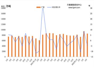 據(jù)國家統(tǒng)計局數(shù)據(jù),2022年1-4月份全國鐵礦石原礦總產(chǎn)量為33079.4萬噸,同比下降0.9%,4月份受到疫情影響,導致國產(chǎn)原礦鐵礦石產(chǎn)量出現(xiàn)大幅下滑。