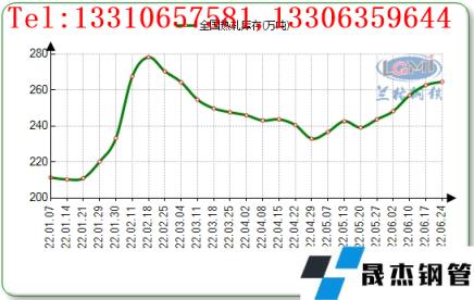 六月份無縫鋼管廠家熱卷產量有所增加,累庫情況有所加重。據云商平臺監測數據顯示,截止6月24日,全國35家樣本鋼企熱卷周產量為277.9萬噸,較5月底增加12.6萬噸。全國35家樣本鋼企熱卷廠內庫存為88.21萬噸,較5月底增加23.71萬噸。