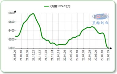 據云商平臺監測數據顯示:截至6月29日,國內十大主導城市108*4.5無縫管市場均價6010元,較上月同期跌346元。