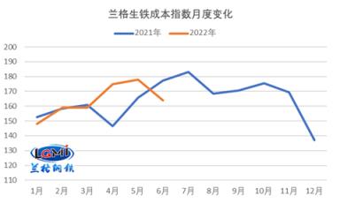 圖1 生鐵成本指數走勢圖