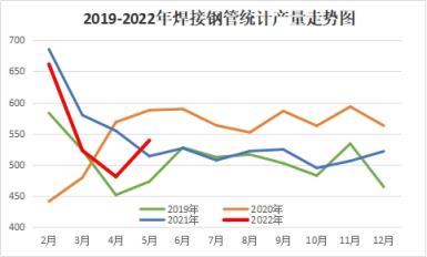 圖1 2019-2022年國(guó)內(nèi)焊接無縫鋼管產(chǎn)量示意圖