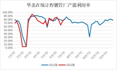 焊鍍管廠產(chǎn)能走勢(shì)與往年趨同,但更具靈活性。1月中旬左右冬奧會(huì)管控供應(yīng)端消息發(fā)散,停產(chǎn)停工晚于往年,南方部分管廠產(chǎn)線在28日-29日左右停工。焊管尤其是鍍鋅管春節(jié)后產(chǎn)量恢復(fù)慢于往年,2月中旬生產(chǎn)管控有所放松。進(jìn)入3月,河北多地連續(xù)兩次封控,長(zhǎng)達(dá)51天,管廠向外發(fā)運(yùn)運(yùn)力較低,焊鍍管生產(chǎn)企業(yè)產(chǎn)能利用率最高下降了32.55個(gè)百分點(diǎn)。其他時(shí)間管廠整體開工率基本靈活把控在75%左右,上半年在統(tǒng)計(jì)管廠平均產(chǎn)能利用率69.97%,較去年下降5.87個(gè)百分點(diǎn)。供需基本面雖有一定改善,但今年各品牌資源競(jìng)爭(zhēng)激烈,下半年淡季階段管廠多是按需靈活控產(chǎn),整體產(chǎn)能相較平穩(wěn),利用套期保值等工具規(guī)避風(fēng)險(xiǎn),從而實(shí)現(xiàn)利潤(rùn)回歸。