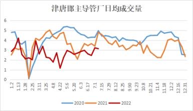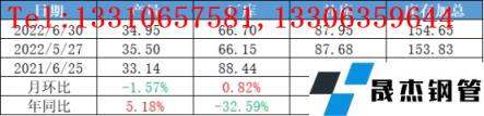 從焊鍍管品種來看,截至6月30日,上半年在統(tǒng)計(jì)11家管廠日均出貨量2.69萬(wàn)噸,同比去年同期下降26.90%,同比2020年同期下降30.49%,其中6月環(huán)比上月增長(zhǎng)1.32%,上半年高預(yù)期、高供應(yīng)持續(xù)發(fā)酵,但需求受疫情等影響,持續(xù)后延,管廠日均出貨峰值4.2萬(wàn),為農(nóng)歷春節(jié)前的冬儲(chǔ)階段。上半年在統(tǒng)計(jì)國(guó)內(nèi)各區(qū)域貿(mào)易商日均出貨量峰值在3月初,均值下滑24.63%,其中6月處于上半年平均日出貨量中線上方水平,較均值增長(zhǎng)9.19%,較年內(nèi)峰值下滑17%。7月價(jià)格跌勢(shì)超出預(yù)期,終端實(shí)際需求釋放仍將有限,預(yù)計(jì)7、8月份仍是一個(gè)高庫(kù)低需的景象;同時(shí),厚壁鋼管產(chǎn)業(yè)鏈虧損程度亦超預(yù)期,關(guān)注庫(kù)存的下降斜率變化。