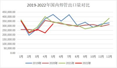 圖4 2019-2022年國(guó)內(nèi)焊管出口量對(duì)比