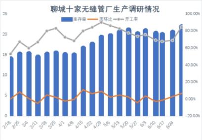 從管廠開工情況來看,臨沂地區自今年開工以來,當地主流管廠開工率就一直維持在35%-45%之間,聊城開工率維持在70%-80%,特別是在3月低江鑫改造升級,小規格管坯緊張,使得臨沂地區無縫管收縮產能,其價格競爭力也明顯下滑。自7月份以來濰坊、河南、內蒙等地區無縫管廠陸續進行檢修以緩解當前虧損情況,供應端減量無疑不會對當前供大于需的現狀有所改善,市場或將進入自我調節修復期。